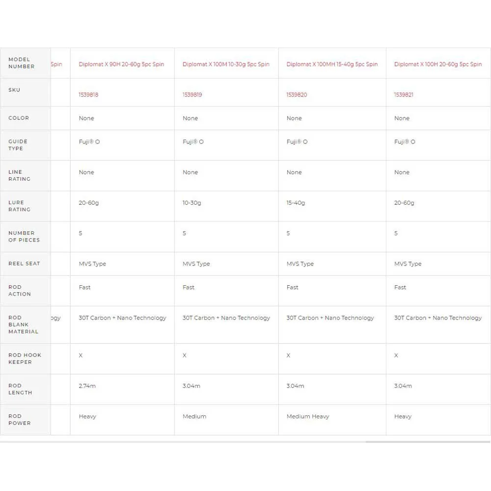 Diplomat X 100MH 15-40g 5pc Spin.